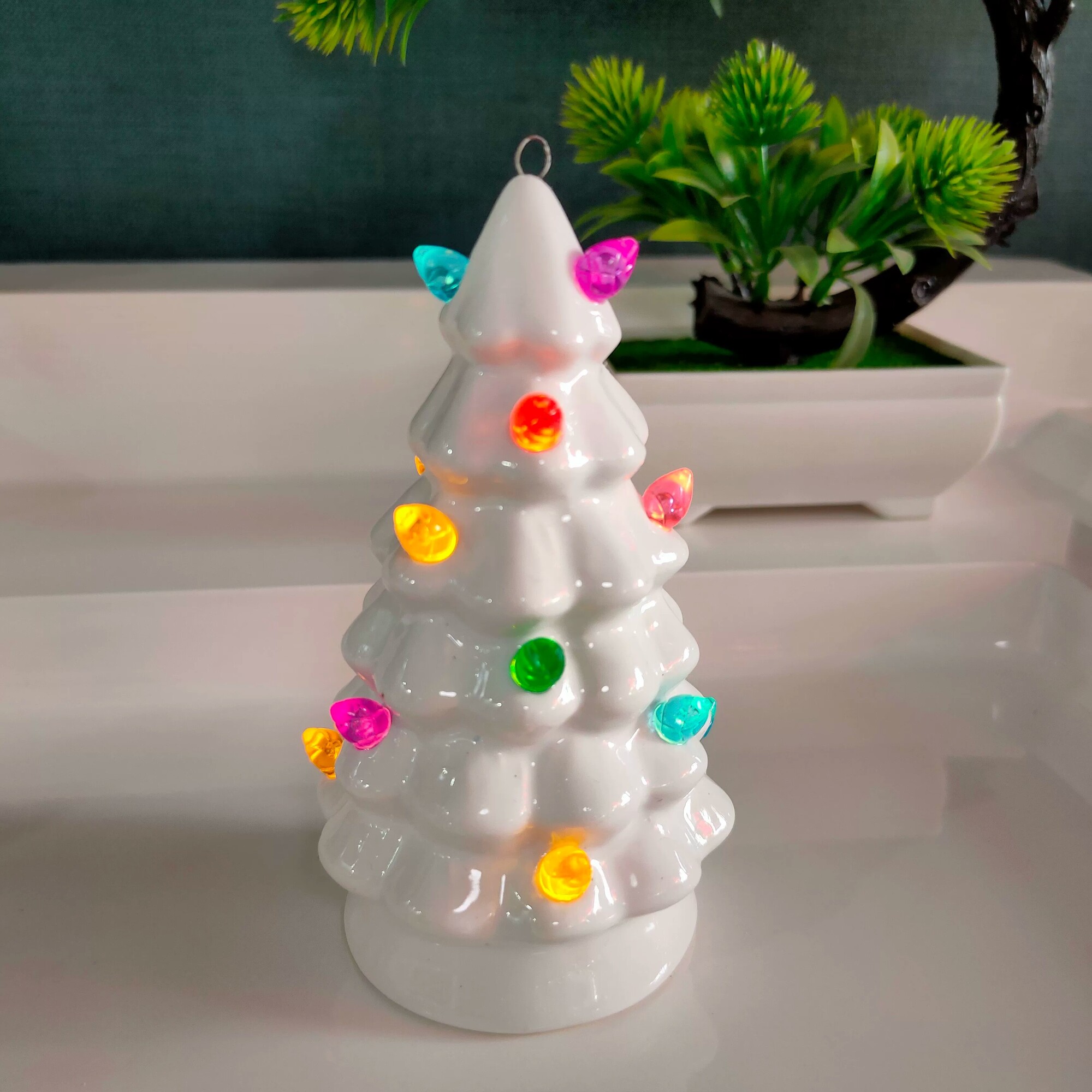 Ceramic Christmas Tree Night Light, Cute Holiday Tabletop Decor, Festive Home Ornament, Christmas Gift for Friends & Family
