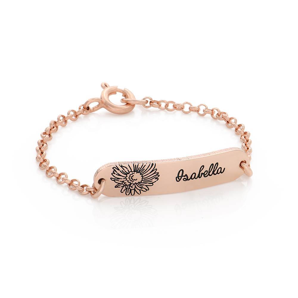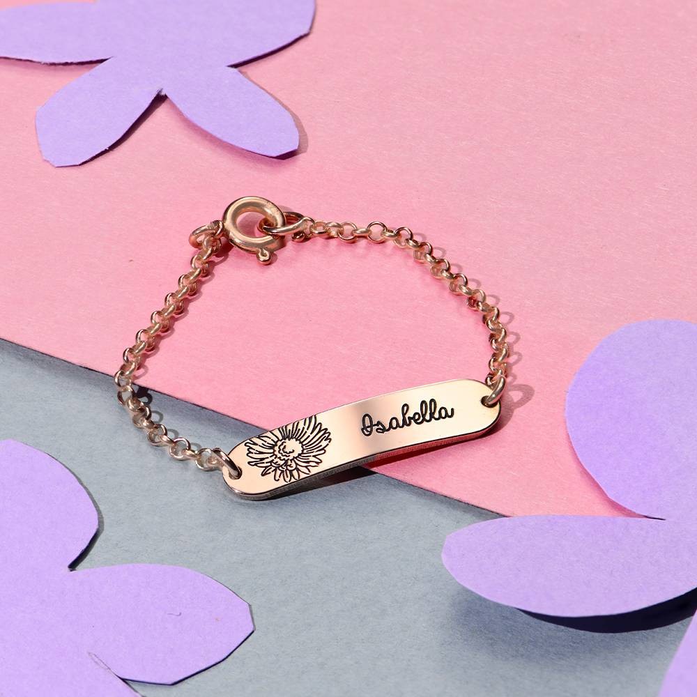 Personalized Baby Name Sterling Silver/18K Gold Bracelet with Birth Flower Available in Three Colors, Christmas Gift for Baby
