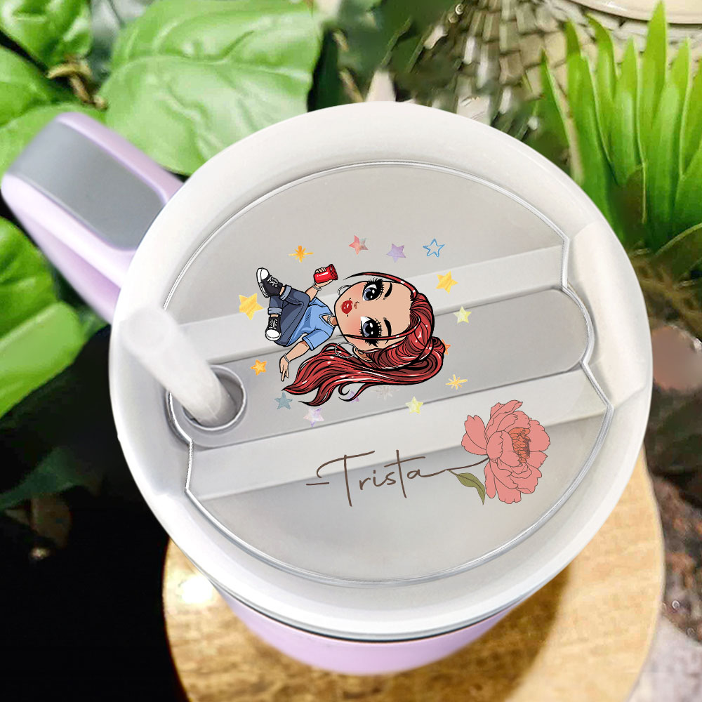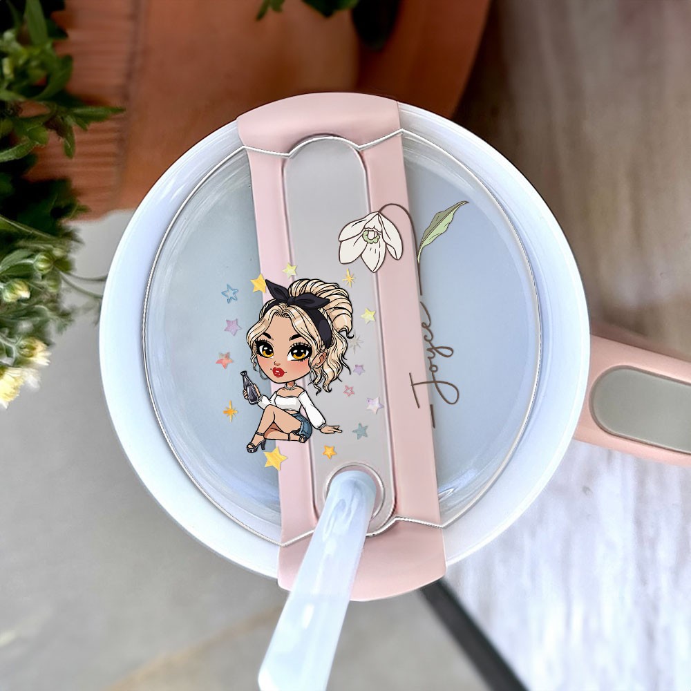Personalized Touch - This tumbler topper features a cartoon fashion girl design that can be personalized, adding a touch of flair to your tumbler. The personalized name allows for a unique connection between the user and their drinkware accessory, enhancing its aesthetic appeal.